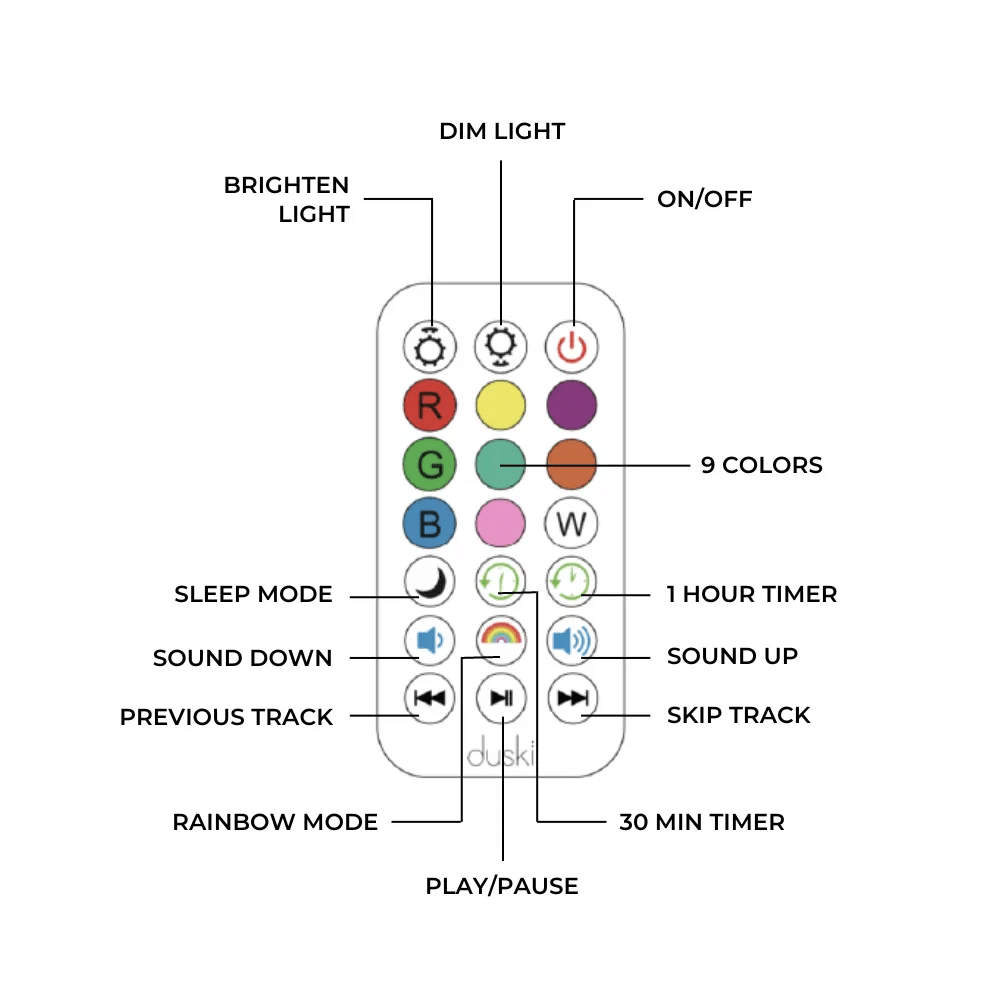 Duski藍牙喇叭夜燈:一次充電,長達10小時連續播放。適合舒緩音樂或故事,助您孩子輕鬆入睡。請記得使用完畢後解除配對,節省電池壽命。每次僅能連接一個裝置,推薦使用Duski專用充電器以延長使用壽命。